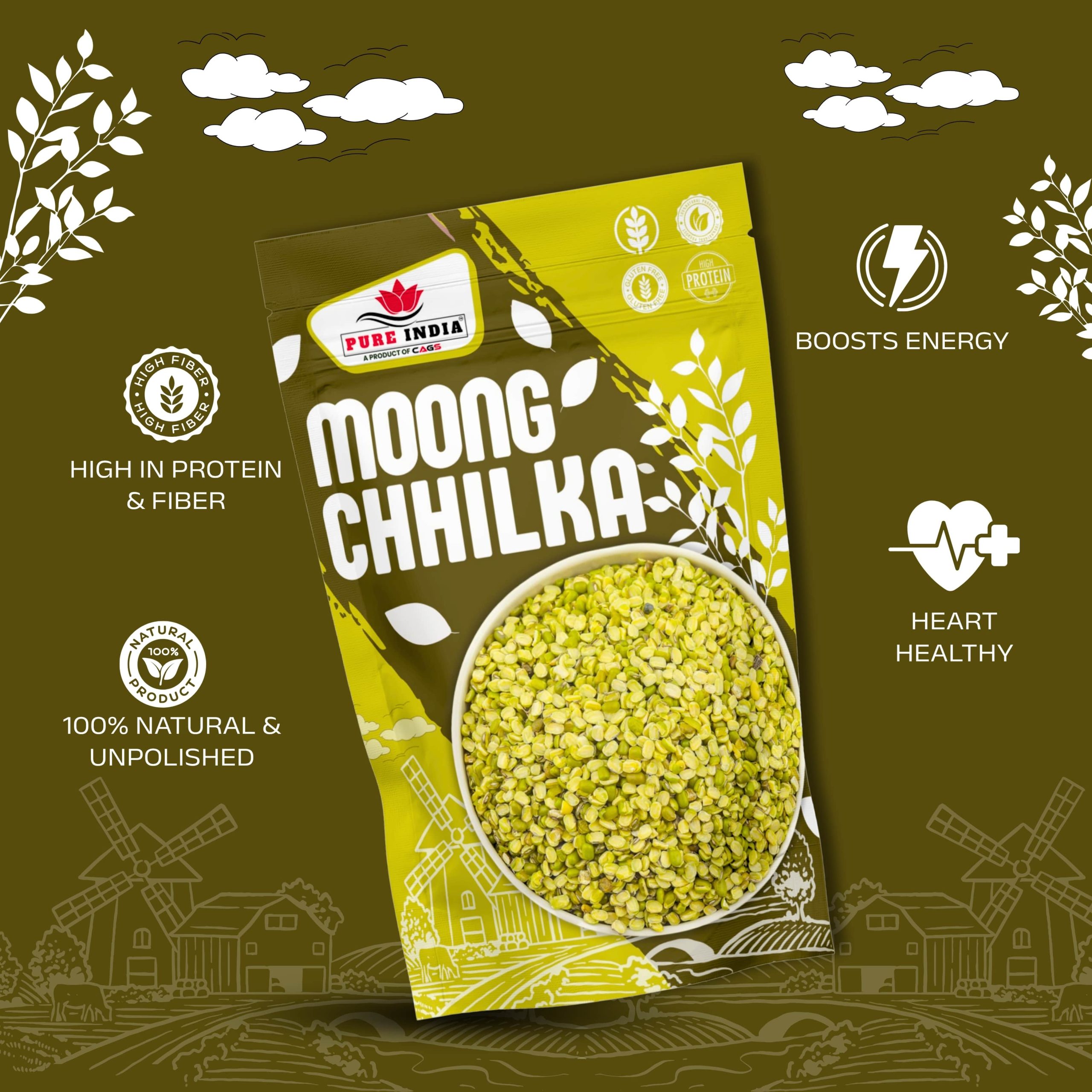 Moong Chilka, also known as Split Green Gram with Skin, is a wholesome and protein-rich lentil known for its earthy flavor and easy digestibility. These lentils are split but retain their natural green skin, which adds extra fiber and nutrition.