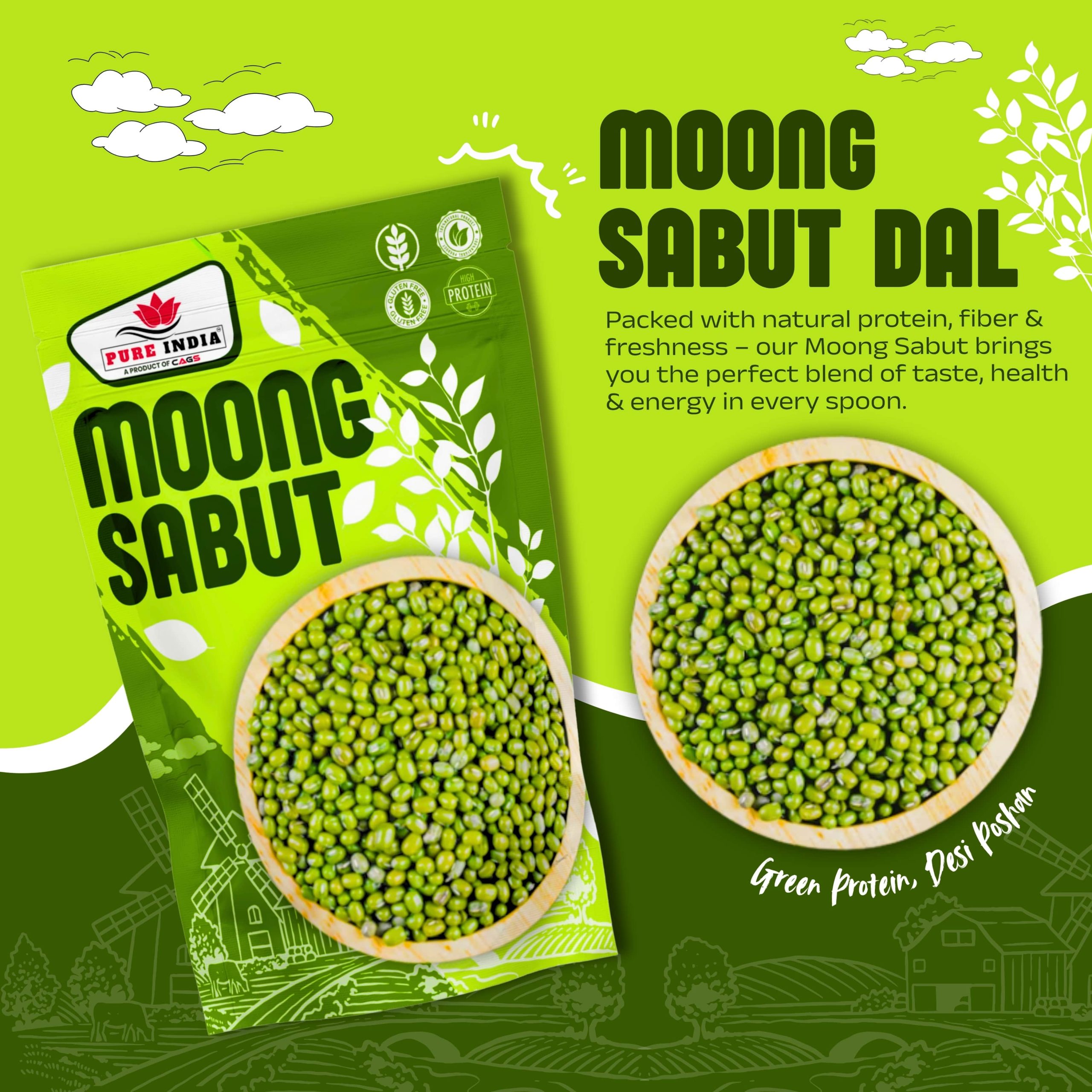 Naturally unpolished and chemical-free, Moong Sabut retains its earthy flavor and high nutrient content. It cooks easily and is perfect for preparing wholesome dishes like sprouted moong salad, moong dal curry, khichdi, soups, and dals.